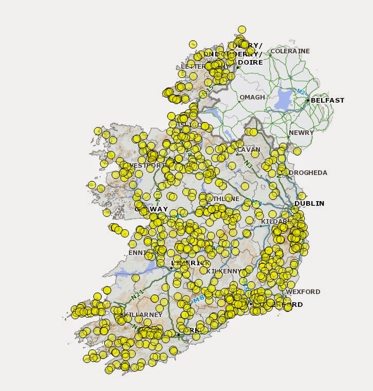 This is a list of all the Irish bullaun stones as recorded in the National monument service database. As you can see they are found all over Ireland in huge numbers.