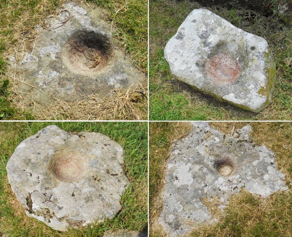 I don't think these are bullaun stones. These are quite recent. Not sure what they were used for though. Support for some kind of machinery, probably during the early industrial age...