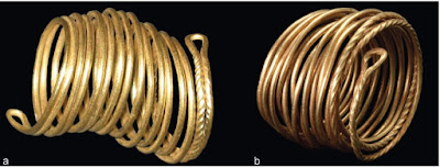 And here is a bronze bracelet from Unetice culture which looks exactly like the Tollense tin spiral rings: